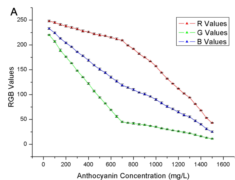 Based on the Beer-Lambert Law, which correlates absorbance with concentration, we hypothesize a direct relationship between anthocyanin levels and RGB values. We developed a quantitative colorimetric detector comprising a color sensor, microprocessor, and LCD display. This device captures RGB values from solutions, processes them to determine anthocyanin concentrations, and displays results.