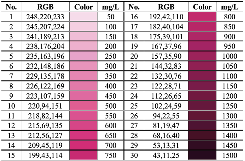 Two methods were devised: RGB spatial distance analysis and standard curve fitting. The first method compares sample RGB values against pre-measured color cards to identify the closest match, enabling rapid quantification.